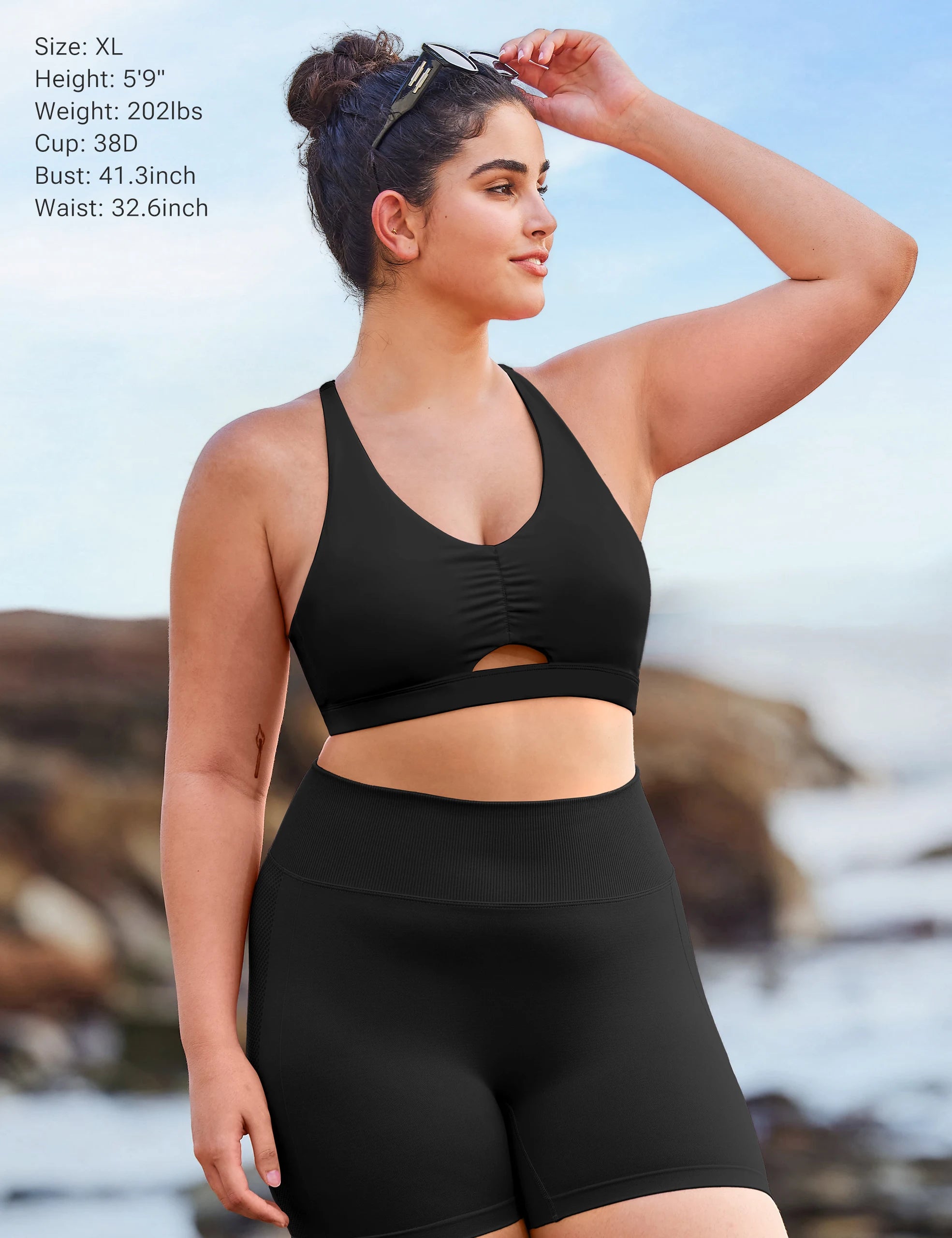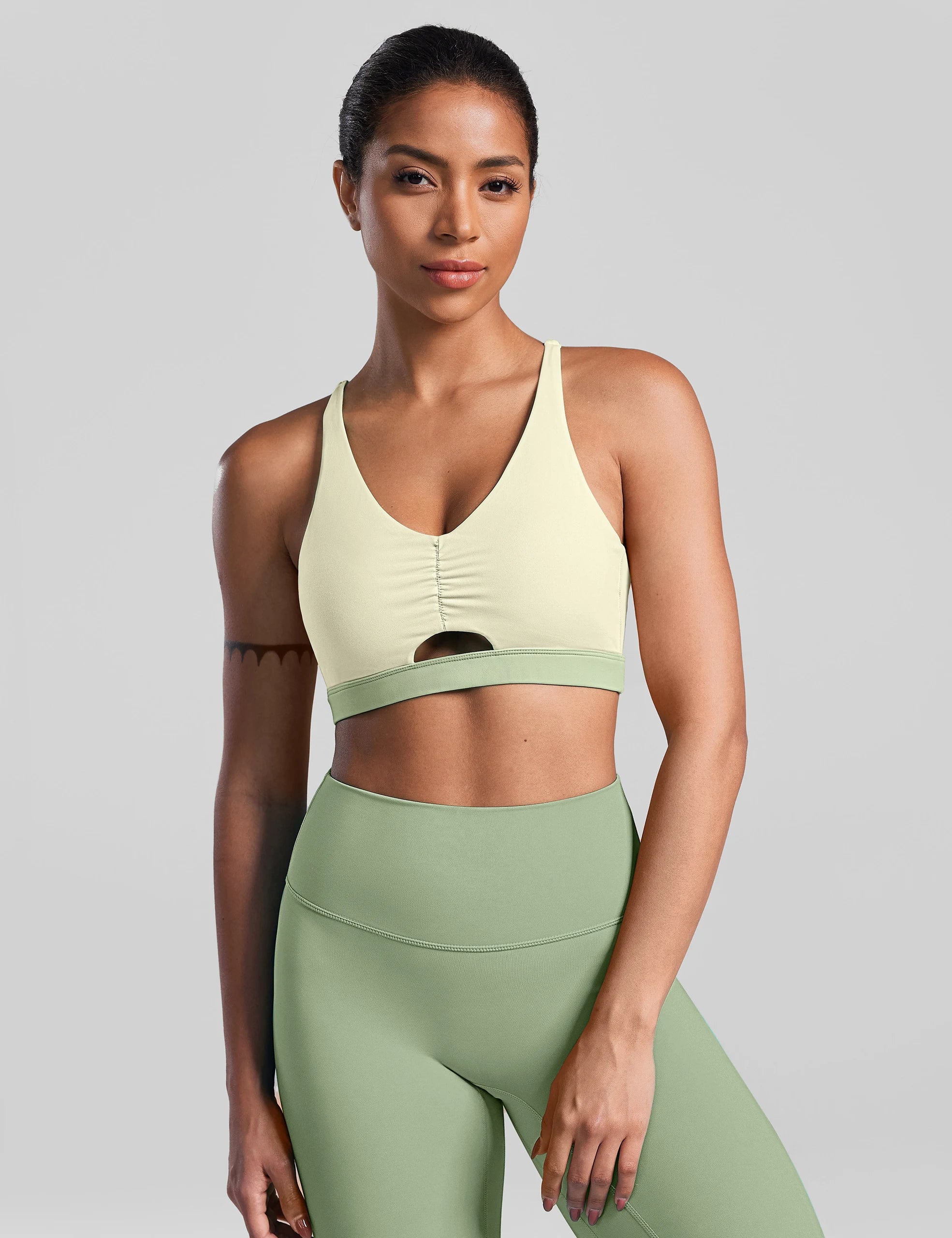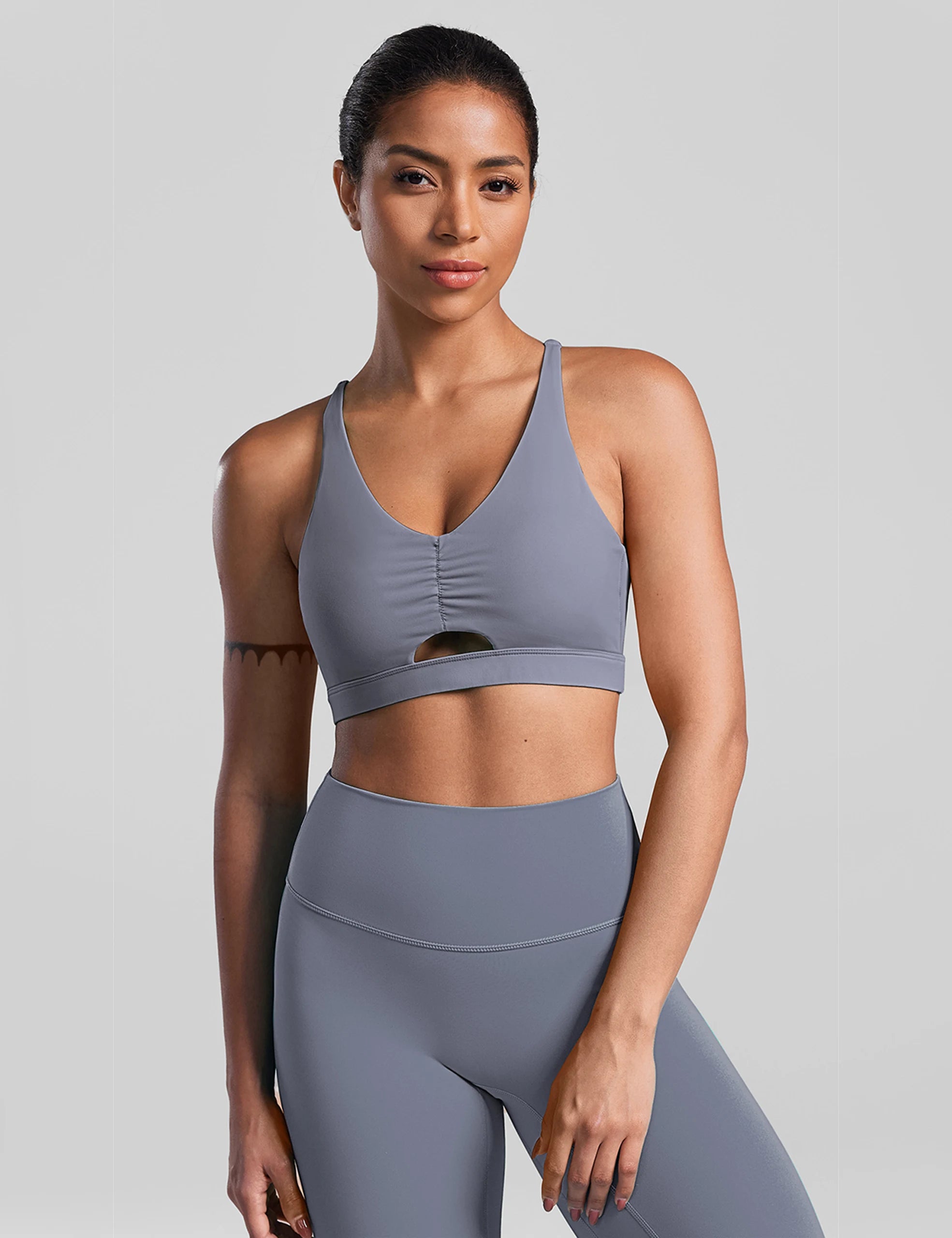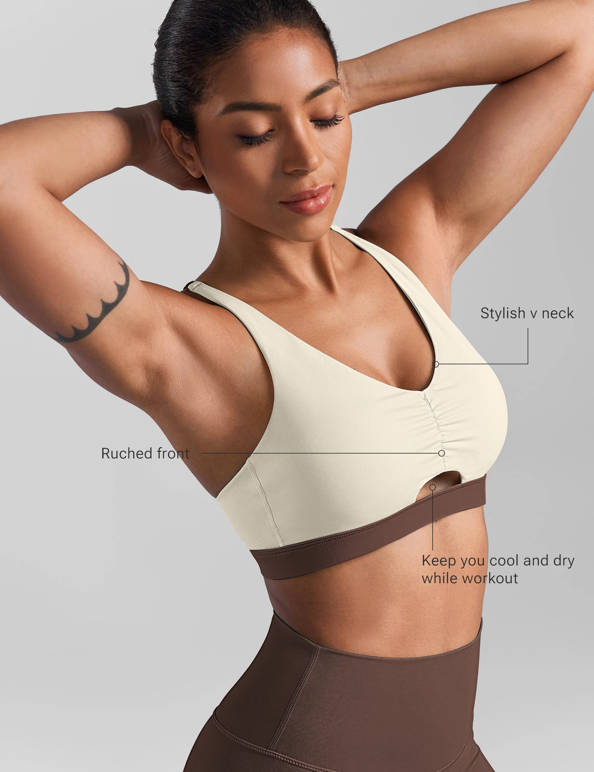- Ruched front, keep you cool and dry while workout